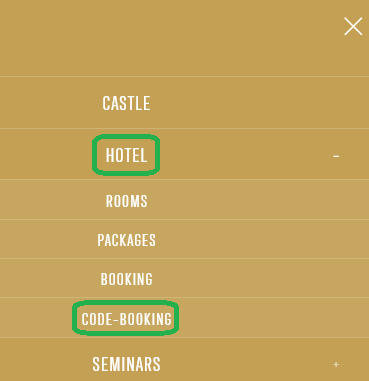 Click on "Hotel", then choose "Code-Booking"